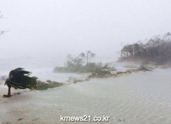 ▲ AFP / Catherone CHISNELL[제공자ⓒ 뉴스21통신. 무단전재-재배포 금지.]파괴적인 힘을 가진 허리케인 '매튜'가 바하마에 상륙했을 당시 모습. 카리브해를 통과한 '매튜'는 아이티, 바하마 등에 돌풍과 폭우로 많은 재산·인명 피해를 내고 미국 동북부 지역에 상륙해했다. 아이티에서는 '매튜'로 인해 842명이 숨졌다.