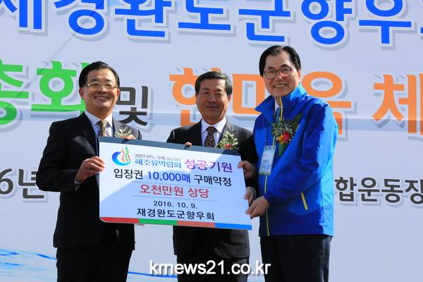 이번 정기총회에서는 그동안 완도군과 향우회의 단합과 발전에 힘써온 회원들에 대한 시상과 함께 내년 4월 14일부터 5월 7일까지 24일간 열리는 ‘2017완도국제해조류박람회’ 성공 개최를 위해 입장권 1만매(5천만원 상당) 구매약정을 하고 적극적인 홍보를 하기로 결정했다.
