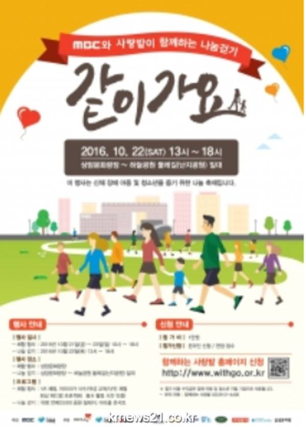 MBC와 실천하는 NGO 함께하는 사랑밭이 21일부터 23일까지 3일간 서울 MBC 상암문화광장에서 나눔 걷기 ‘같이 가요’를 실시한다.