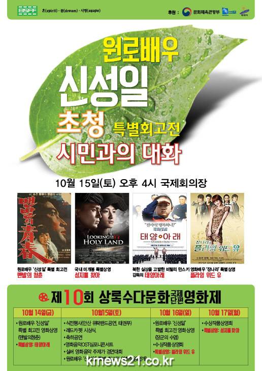 영화제는 국내외에서 응모한 250여 편의 영화 중 엄선된 30편의 수상작과 함께 우수 초청영화, 초청작품 10편이 동시 상영되고, 15일에는 원로배우 ‘신성일’ 특별 초청 회고전이 국제회의장에서 열린다.