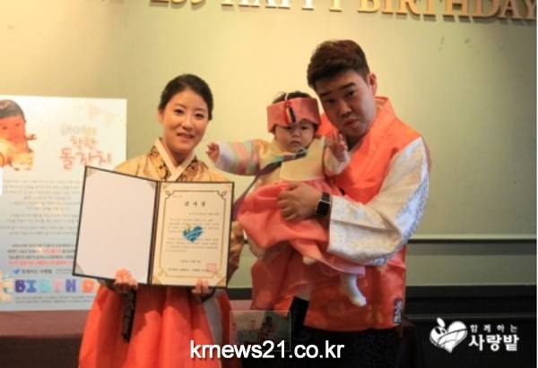 김하정 씨와 유승민 씨는 “첫돌을 맞이한 딸 하이의 돌잔치를 준비하던 중 가정의 큰 기쁜 일인 만큼 많은 사람들에게 기쁨을 나누어주고 싶어 참여하게 됐다”며 이날 ‘착한 돌잔치’에 참여한 가정에게는 돌잔치 기념 판넬과 감사장이 전달되었다.