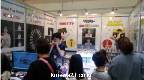 여성 청년창업가 고하린이 서울국제문구·학용·사무용품종합전시회에서 인기 캐릭터를 접목한 멀티형 악기를 선보였다.