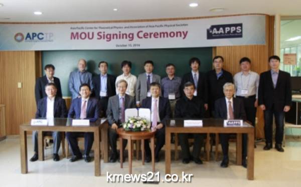 (재)아시아태평양 이론물리센터(APCTP, 소장 이범훈)와 아시아태평양물리학연합회(AAPPS, 회장 김승환)가 15일 APCTP 본부에서 권역 내 기초과학 진흥 및 국제 네트워크 구축을 위해 양해각서를 체결했다.