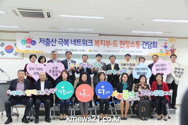 전라남도는 18일 전남여성플라자에서 ‘전남 저출산 극복 민․관 네트워크’ 단체와 중앙-지방 간 현장소통 간담회를 개최해 출산율이 전국에서 가장 높은 지역으로서 저출산 극복 시책을 선도하겠다는 뜻을 내비쳤다.