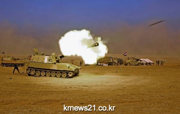 IS가 점령하고 있는 모술을 탈환하기 위해 이라크 군이 M109 자주포로 작전을 수행하고 있다.