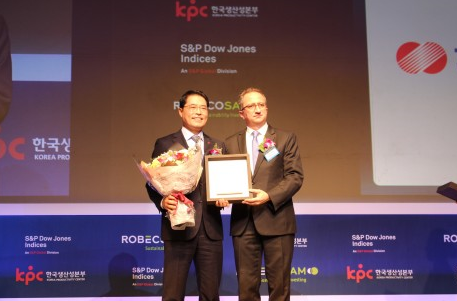한국전력(사장 조환익)은 10월 19일 서울 그랜드하얏트 호텔에서 개최된 2016 다우존스 지속가능경영지수(DJSI) 국제 컨퍼런스 및 인증식에서 3년 연속으로 글로벌 전력유틸리티 부문 우수기업에 선정되어 인증패를 수여받았다.