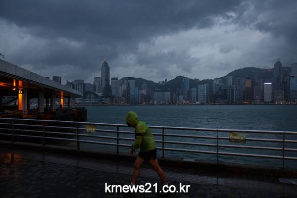 ▲ 21일 제22호 태풍 `하이마`가 홍콩으로 접근하고 있는 홍콩 빅토리아 항구의 모습. Anthony WALLACE / AFP[제공자ⓒ 뉴스21통신. 무단전재-재배포 금지.]필리핀에서 최소 8명을 사망케한 태풍 '하이마(Haima)'가 홍콩으로 접근하고 있다.