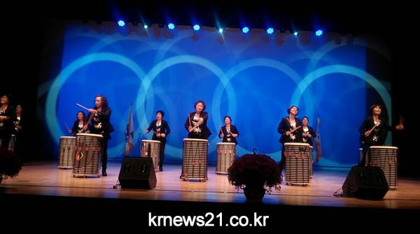 ▲ 용산아트홀 대극장 미르에서 대천5동 주민자치프로그램‘난타팀 공연장면