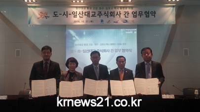 김포시는 지난 27일 킨텍스 제2전시장에서 경기도, 고양시, 파주시, 일산대교주식회사와 일산대교 통과 택시 통행료 지원 업무협약 체결식을 가졌다.
