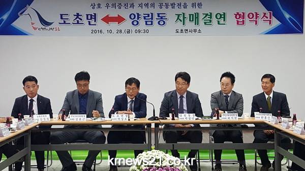 전남 신안군 도초면과 광주광역시 남구 양림동이 10월 28일(금) 도초면 회의실에서 양 지역의 기관단체장, 주민대표 등 50여명이 참석한 가운데 도·농 지역의 교류증진과 공동발전을 위한 자매결연을 체결하였다.