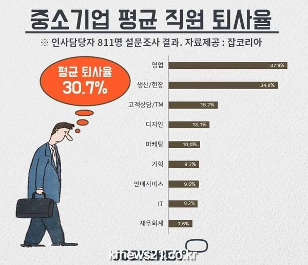 ▲ 올해 국내 중소기업 평균 직원 10명 중 3명(30.7%)이 퇴사한 것으로 조사됐다(사진제공: 잡코리아)올해 국내 중소기업 평균 직원 10명 중 3명(30.7%)이 퇴사한 것으로 조사됐다.