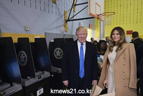 뉴욕 투표소를 방문한 도널드 트럼프 공화당 대선후보와 그의 아내 멜라니아 트럼프.
