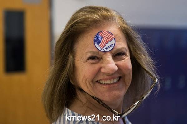 버지니아 버크(Burke)시에서 투표를 마친 한 여성이 미소짓고 있다. 버지니아는 선거인단이 13명이 걸려있는 경합지 중 한 곳이다.