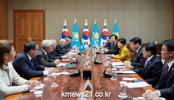 한국을 국빈방문한 누르술탄 나자르바예프 카자흐스탄 대통령과 박근혜 대통령이 오늘 청와대에서 정상회담 및 MOU 서멍식을 개최했다.