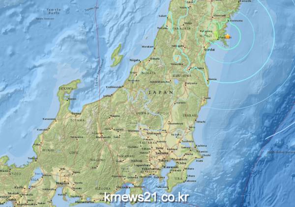 지진은 이날 오전 6시 42분 직후 도쿄에서 350km 가량 떨어진 혼슈 섬의 북동부 해안에서 발생했다. 진원 깊이는 44km인 것으로 알려졌다.