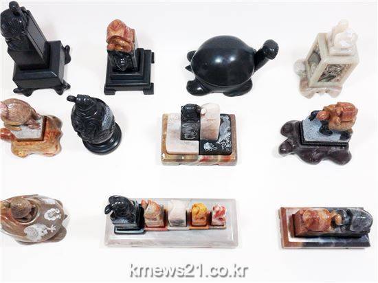 김육남 명인은 이번 대전에 하늘의 용, 땅의 거북을 다양하게 형상화한 옥공예 작품 ‘낙관나들이’를 출품해 국무총리상의 영예를 안았다.
