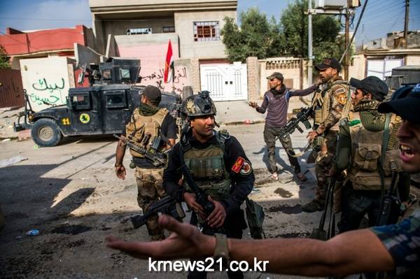 이라크 모술의 카르크클리 지역에 폭탄을 실은 차량이 있다는 신고를 받고 온 이라크 특수 부대원들.