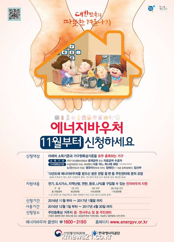 대구시는 저소득층의 동절기 에너지비용을 지원하는 ’16년도 에너지바우처 사업을 내년 1월까지 신청 받는다.