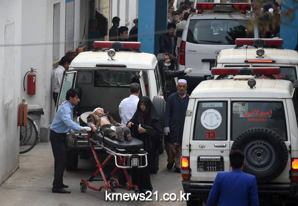 ▲ 아프가니스탄 수도 카불의 시아파 사원에서 21일(현지시간) 자살 폭탄 공격이 발생해 최소 32명이 사망하고 64명이 부상했다. WAKIL KOHSAR / AFP[제공자ⓒ 뉴스21통신. 무단전재-재배포 금지.]아프가니스탄 수도 카불에서 시아파를 겨냥한 대규모 자살폭탄 공격으로 최소 32명이 사망하고 64명이 부상했다.