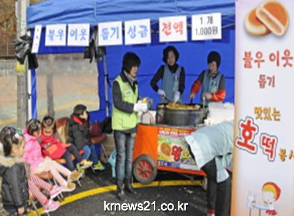 광진구(구청장 김기동) 광장동주민센터(동장 서석순) 인근에서 이웃돕기 기금 마련을 위한‘사랑의 호떡 판매행사’가 열렸다.