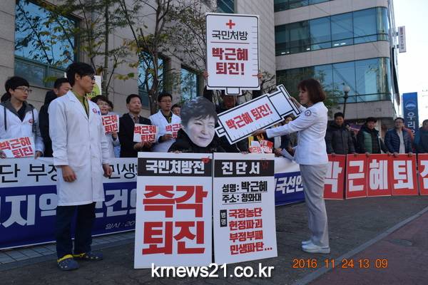 특히 우리보건의료인들은 대통령의 의료법위반 등 의료농단 사태에 경악을 금치 못하고 있다. 박근혜는 국가기밀인 대통령의 건강문제를 비선실세에 관리하게 하였고, 최순실의 대리처방과 길라임 가명처방으로, 안전성도 검증되지 않았고 부작용도 있는 태반, 백옥주사, 신데렐라주사 등 주사제를 외부에서 반입하여 투약한 것으로 확인되었다. 또한 청와대는 비아그라, 팔팔정, 유사프로포폴, 마취제 등의 약품을 국민의 세금으로 구매한 것으로 확인되었으며 이에 대한 사용처를 밝히지 않고 있어 더 많은 의혹을 낳고 있다.