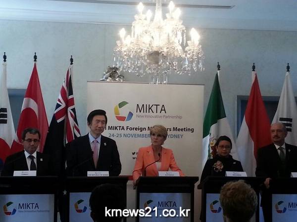 윤병세 외교부장관은 25일 호주 시드니에서 개최된 제8차 믹타(MIKTA·중견 5개국 협의체) 외교장관회의에 참석, 비확산·이주·평화유지군·난민·테러리즘·정책 혁신 등 다양한 지역 및 글로벌 차원의 현안에 대해 의견을 교환하고 인도적 지원 및 회원국간 결속 강화를 위한 믹타 차원의 협력방안을 모색했다고 외교부가 이날 밝혔다.
