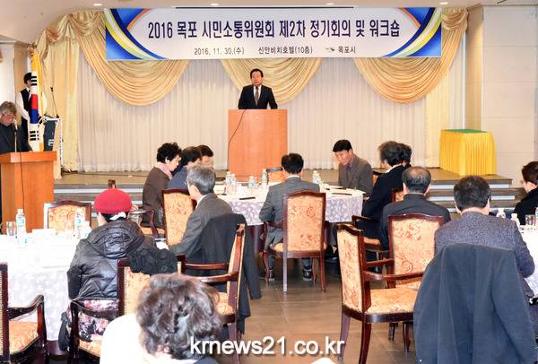 목포시가 양방향 소통으로 시민과 함께하는 시정 추진을 위해 운영 중인 시민소통위원회의 제2차 정기회의 및 워크숍을 30일 신안비치호텔에서 개최했다.