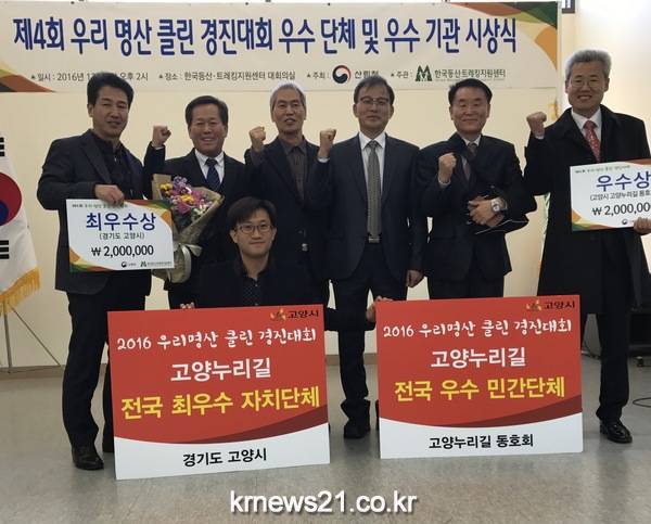 고양시(시장 최성)의 ‘고양누리길’이 지난 6일 산림청 주최 ‘제4회 우리명산 클린경진대회’에서 지자체 부문 최우수상(1위)과 산악단체 부문 우수상(2위)을 수상하는 쾌거를 이뤘다. 이는 2014년 우수상, 2015년 장려상에 이은 3번째 수상이다.