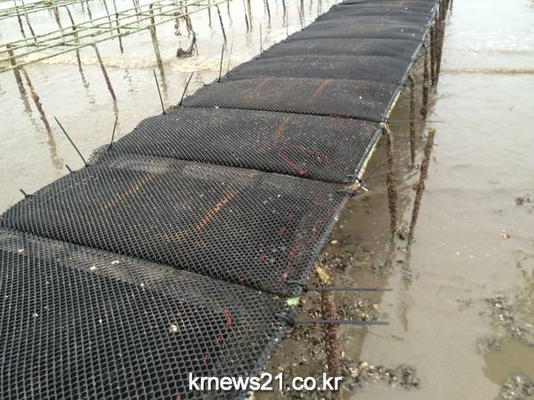 수평끈식 갯벌 굴양식은 굴 채묘연(단련종굴 0.5cm)을 수평으로 걸어 양식하는 방식으로 총 40set(1set당 가로50m×세로2m, 0.3톤생산) 시설하여 12톤 가량의 알굴 생산을 기대하고 있다.