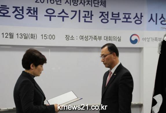 성남시는 12월 13일 오후 3시 정부서울청사에서 열린 ‘청소년 보호정책 우수지자체 정부포상 시상식’에서 최우수 기관 상인 대통령 표창과 포상금 300만원을 받았다.