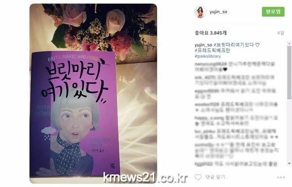 한편 배우 소유진은 소설가 프레드릭 배크만의 팬임을 인증했다. 자신의 인스타그램에 신작 소설 <브릿마리 여기 있다>를 추천한 것이다. 소유진은 배크만의 대표작인 <오베라는 남자>도 추천한 적이 있다.