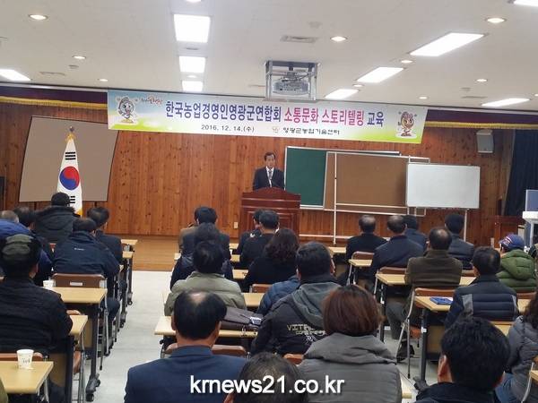 영광군(군수 김준성)은 지난 14일 농업기술센터 회의실에서 한국농업경영인 회원 80여명이 참석한 가운데 소통문화 스토리텔링 교육을 실시했다.