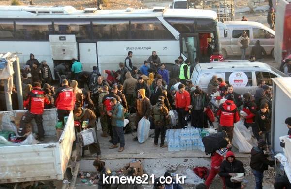 시리아 알레포 북부 도시에서 철수한 사람들이 반군이 점령하고 있는 칸 알 아살 지역에 도착했다.