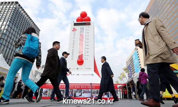 올해와 다르게 작년에는 43도를 기록했다. 지난해 같은 기간보다 25.5도나 낮은 것이다. 이외에도 이웃돕기 성금이 57%가량이나 급감했다.