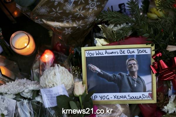 영국 가수 조지 마이클의 사망 소식을 듣고 그의 죽음을 추모하기 위해 팬들이 런던 자택 앞에 사진과 꽃 장식, 양초를 쌓아놨다.
