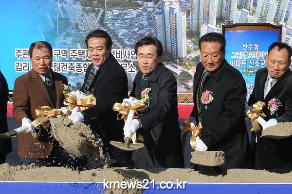 산수1구역 신축현장에서 진행된 이날 착공식은 김성환 동구청장, 윤남중 산수1구역 조합장 및 조합원, 시공사 대표, 유관기관 대표, 주민 등 100여 명이 참석한 가운데 경과보고, 기념사, 테이프커팅 및 시삽행사 순으로 진행됐다.