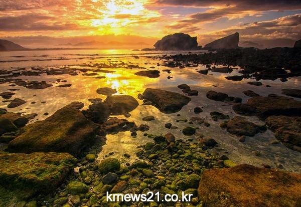 남해 송정 바닷가 일몰