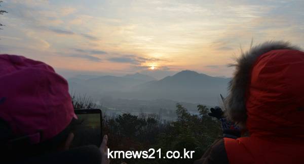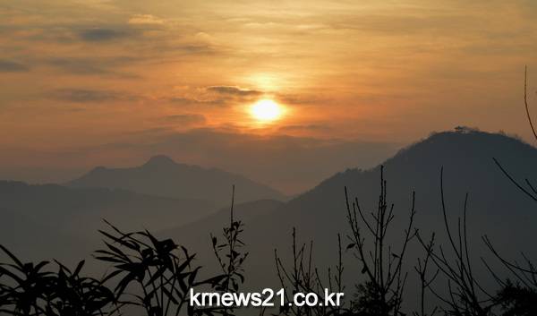 죽녹원 성인봉 맞은편으로 층운(層雲)을 뚫고 정유년(丁酉年) 새해의 희망찬 기운을 한껏 품은 아침 해가 솟아오르고 있다.