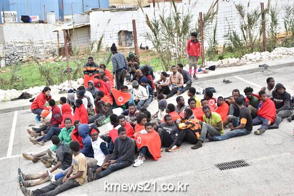 ▲ 지난 12월9일(현지시간) 스페인령 세우타로 넘어와 이민자 임시 체류 센터(CETI)로 이송된 사람들. Antonio SEMPERE / AFP[제공자ⓒ 뉴스21통신. 무단전재-재배포 금지.]아프리카 난민 1천여 명이 1일(현지시간) 모로코 내 스페인령 세우타(Ceuta)로 불법 입국을 위해 국경 철조망을 무단으로 넘어가는 것을 시도하다 물리적 충돌이 발생해 모로코 및 스페인 국경 수비대 수십명이 부상했다고 현지 당국이 밝혔다.