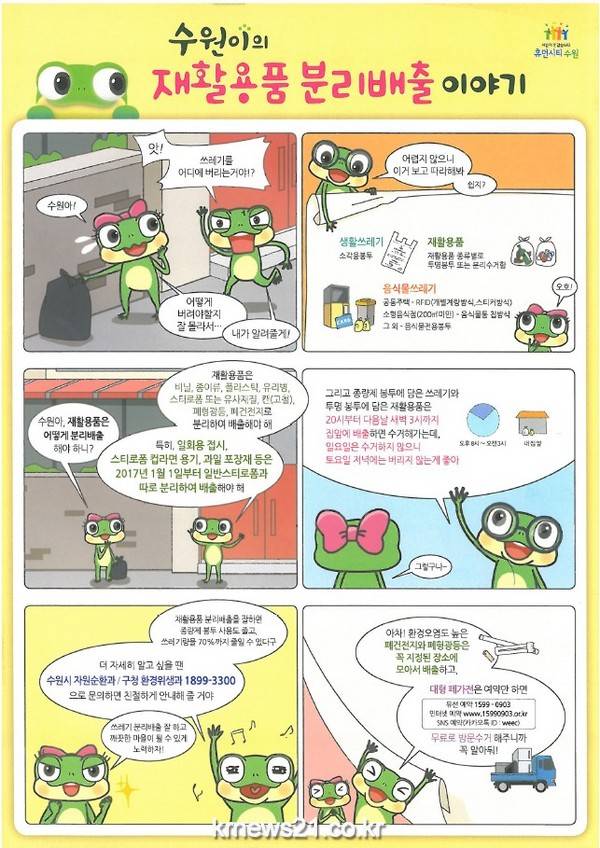 수원시 자원순환과 관계자는 “올해도 자원 재활용을 위한 분리배출을 적극적으로 홍보하고, 수거율을 높이겠다.”면서 “생활 쓰레기 감량으로 ‘환경 도시 수원’ 조성에 이바지하겠다.”고 밝혔다.