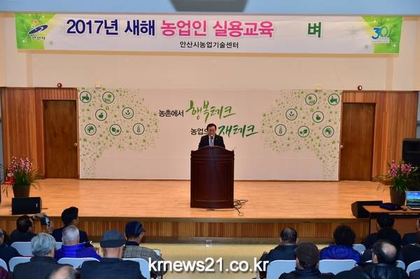 안산시(시장 제종길)에서는 농업 신기술을 보급· 확산과 농정시책, 농업경영 등 농업인의 소득증대 향상을 위해 지난 6일부터 31일까지 총 12회에 걸쳐 농업기술센터와 대부영농상담소에서 2017 새해농업인 실용교육을 실시한다.