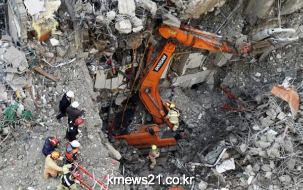 매몰된 조씨와 김씨는 인력업체 황금인력 소속으로 이 건물의 철거는 신성탑건설이 맡았다. 신성탑건설은 철거업체 다윤C&C에 하청, 다윤C&C는 또 황금인력을 통해 인력을 모집한 것으로 알려졌다.