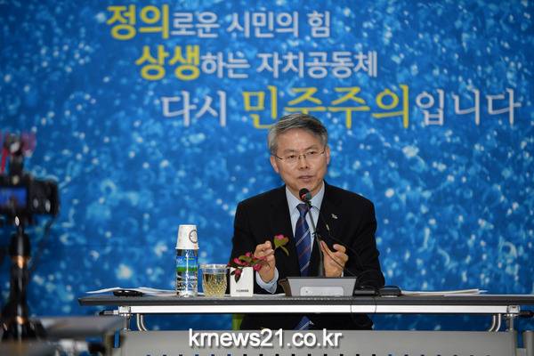 이날 기자간담회에서 민 구청장은 탈핵·에너지 전환도시를 향해 강한 의지를 표명했다.