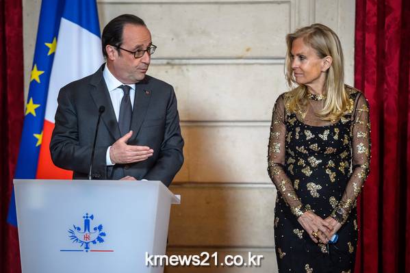 ▲ 주 프랑스 미국 대사 이임식에 참석한 프랑수아 올랑드 프랑스 대통령(왼쪽) Christophe Petit Tesson / POOL / AFP [제공자ⓒ 뉴스21통신. 무단전재-재배포 금지.]프랑수아 올랑드 프랑스 대통령은 16일(현지시간) 도널드 트럼프 미국 대통령 당선인의 유럽 연합(EU) 비판에 대해 "EU는 외부 충고가 필요하지 않다"고 EU에 대한 비난을 반박했다.