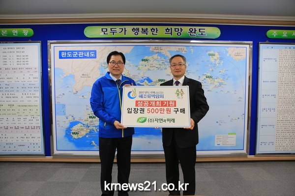박매호 대표는 “박람회를 계기로 해조류 소재 생산 제품들을 널리 알리기 위해 구매에 나섰다”며 “2017 완도국제해조류박람회의 성공 개최를 위해 도움의 손길이 필요하면 언제든지 뜻을 모아 동참하겠다”고 밝혔다.