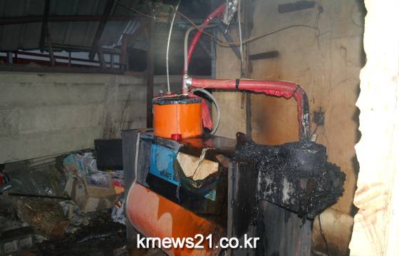 ▲ 지난 5일 보령시 청라면 황룡리 한 주택에서 발생한 화목보일러 화재 장면