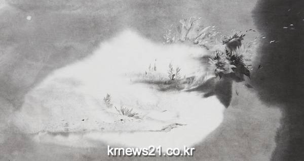즉 추상적인 감정은 수묵으로 드러낼 수 있었던 것은 발묵법을 통해서다. 그리고 마음의 울림을 넝쿨과 식물로 드러낼 수 있었던 것은 먹이 마르면 다시 그리는 적묵법과 한지를 손으로 찢어 겹겹이 쌓은 콜라주를 통해서다.