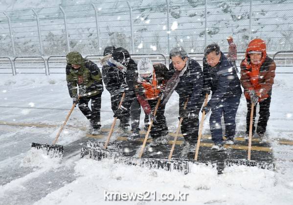 시는 앞으로 11일까지 서해안을 중심으로 많은 눈이 내릴 것으로 예보됨(3~10cm)에 따라 13개 주요 취약구역별 비상근무를 확대 실시하고 강설로 인한 피해 발생시 신속한 피해상황 보고, 재난 대처 국민 행동요령 “내 집, 내 점포 앞 눈치우기” 등 시민들에게 적극적 홍보하여 시민불편이 없도록 하겠다고 밝혔다.