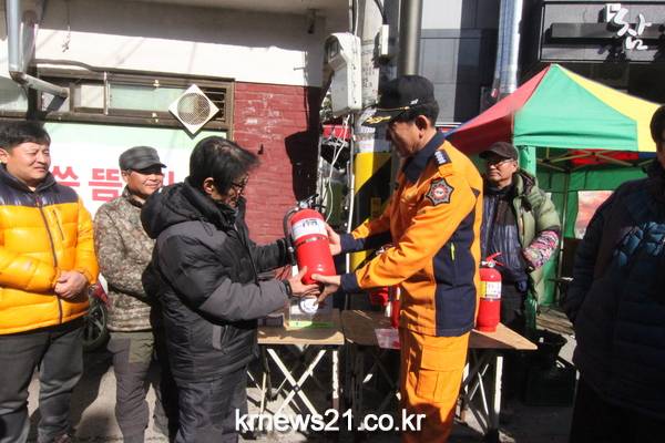 김포소방서(서장 배명호)는 21일 김포시 양촌읍 양곡 5일장에 보이는 소화기함과 주변 전신주에 소화기 거치대를 설치하고 시장 상인들을 대상으로 소화기 관리 및 사용법 등 소방안전교육을 실시했다고 밝혔다.