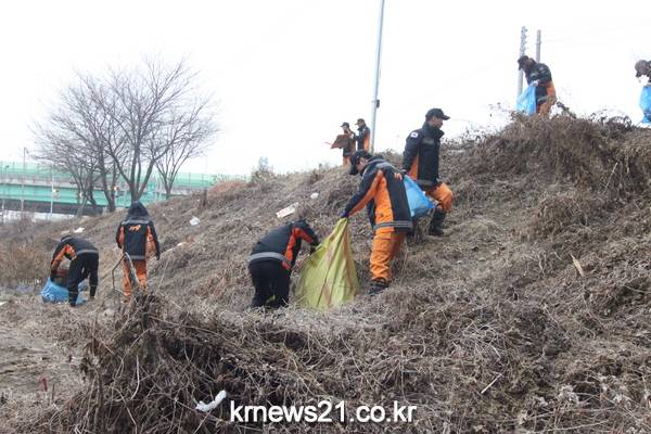 으며 김포소방서 정문을 시작으로 걸포공원 앞 사거리, 김포우리병원 앞 등 3구역으로 나누어 도로 및 하천 주변의 각종 쓰레기 수거와 도로상 위험요소를 제거했다.